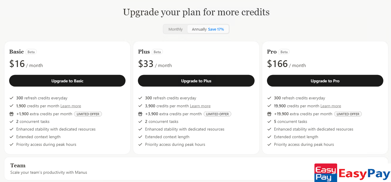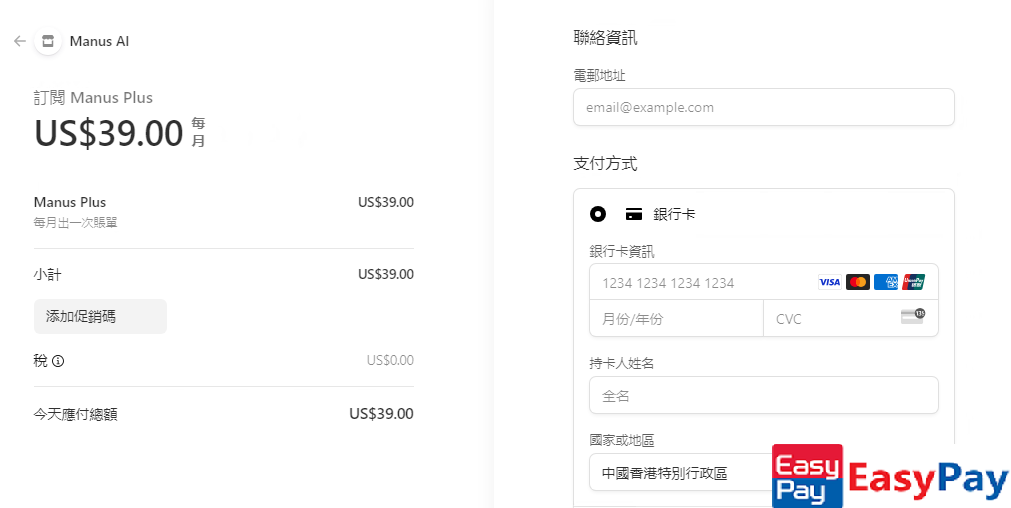 订阅 Manus 高级会员并不复杂，关键在于选择一张可靠的国际支付虚拟信用卡。相比传统实体卡，**EasyPay 虚拟信用卡** 更加灵活高效，支持即时开卡、美元充值，并且兼容 Stripe、Paddle 等国际支付平台。