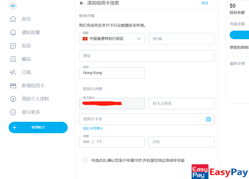 * 如何开通并充值 EasyPay 虚拟信用卡