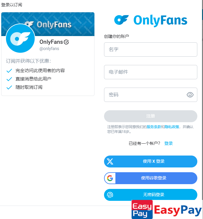对大陆用户而言，虚拟信用卡是畅享 OnlyFans 及全球内容平台的最佳选择。选择 **EasyPay 虚拟卡**，不仅能快速订阅 OnlyFans，还能一键解锁 ChatGPT、Spotify、Netflix 等全球热门服务，真正实现无障碍跨境支付 🚀。